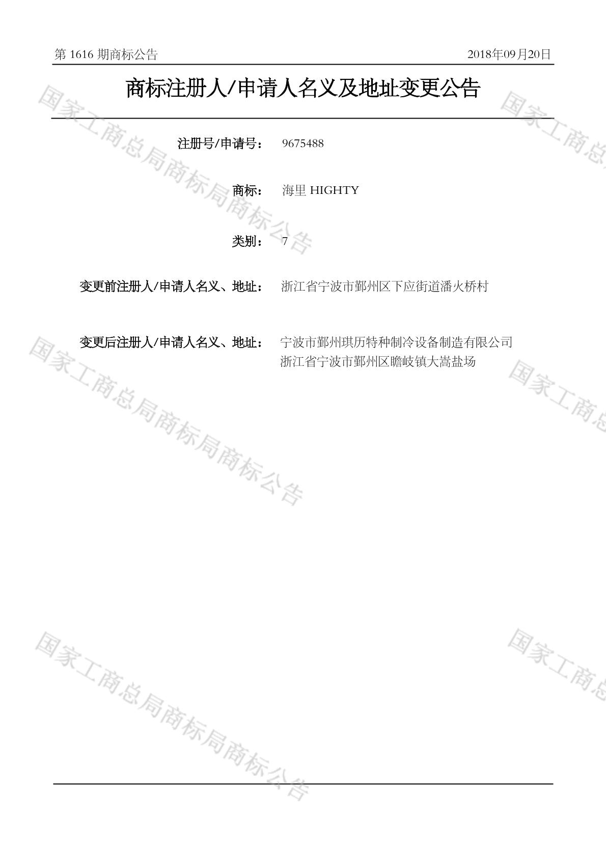 2018-09-19 变更商标申请人/注册人名义/地址 | 核准证明打印发送