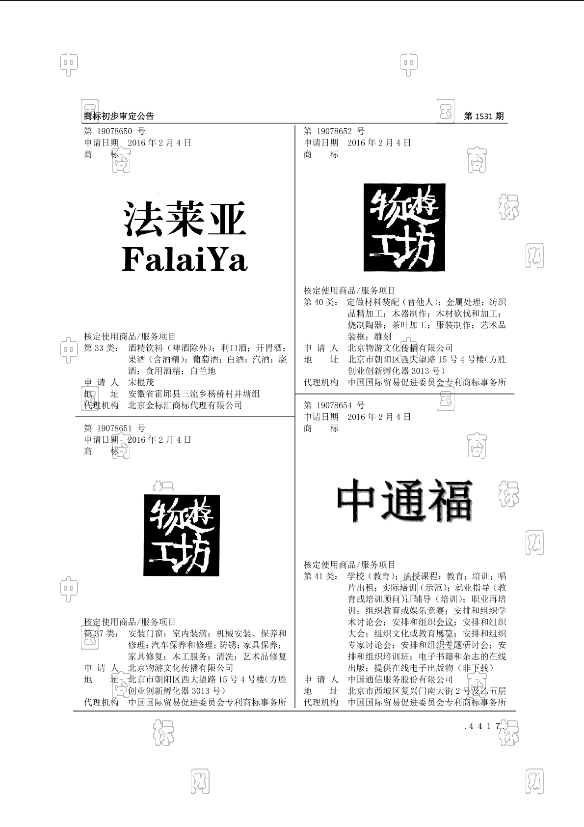 2017-04-19 商标注册申请 | 注册证发文
