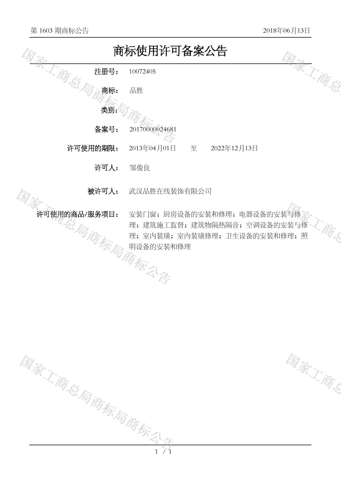 2017-12-20 商标使用许可备案 | 等待打印受理通知书