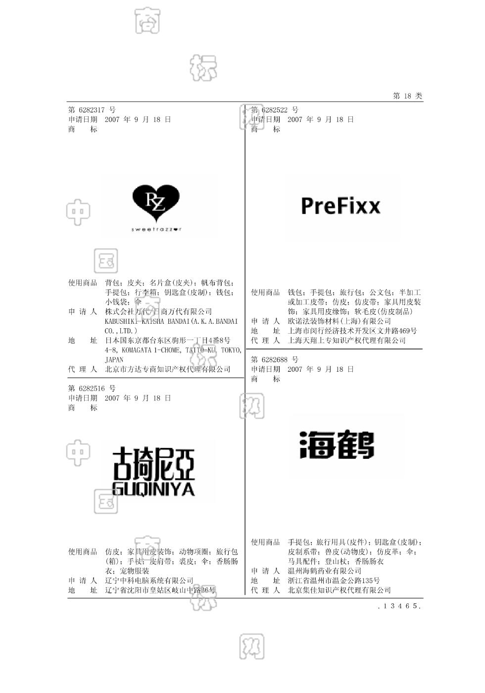 2007-09-18 商标注册申请 | 申请收文