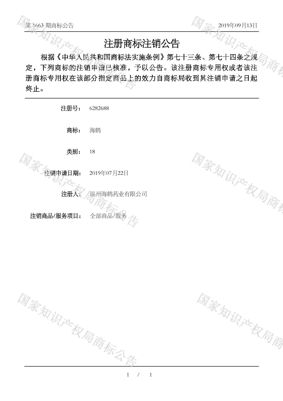 2019-07-22 商标注销申请 | 申请收文