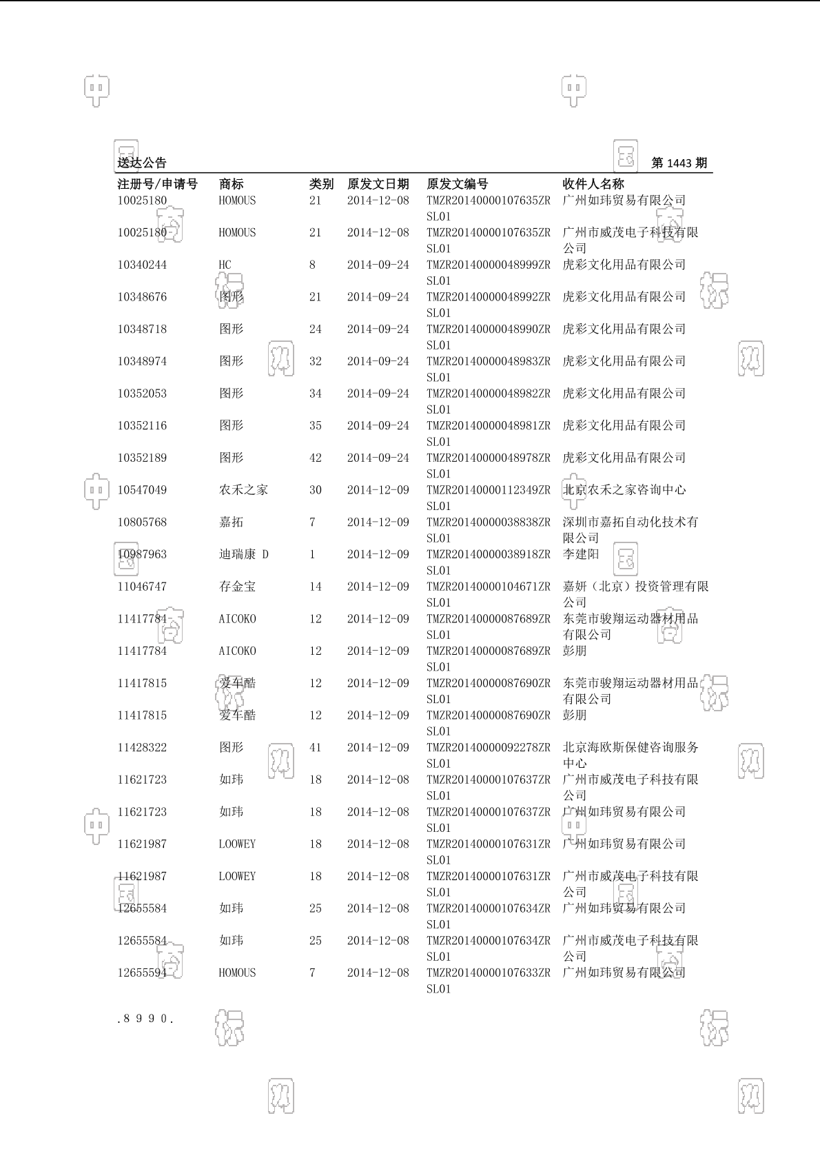 2015-05-24 商标转让 | 排版送达公告(商标转让申请受理通知书)