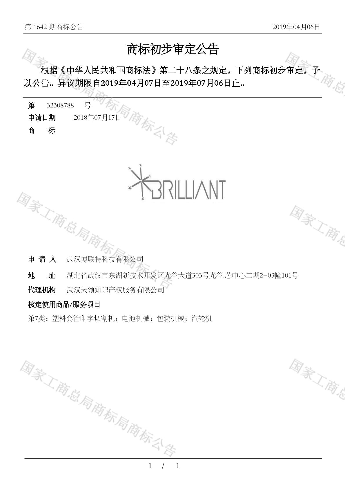 商标注册公告(一) 2019-07-06 第1654期 查看公告