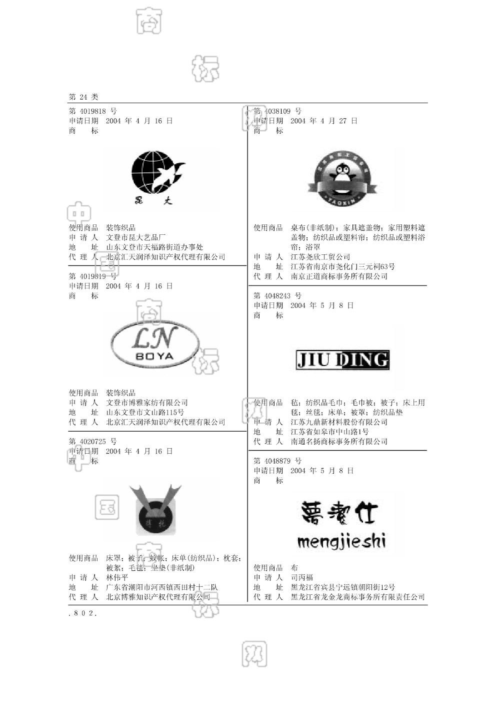 2401-装饰织品;2406-垫套;2406-床上用毯;2406-床单;2406-床罩;2406-枕套;2406-被子;2406-被罩;2406-被面;2406-褥垫套 - 1099