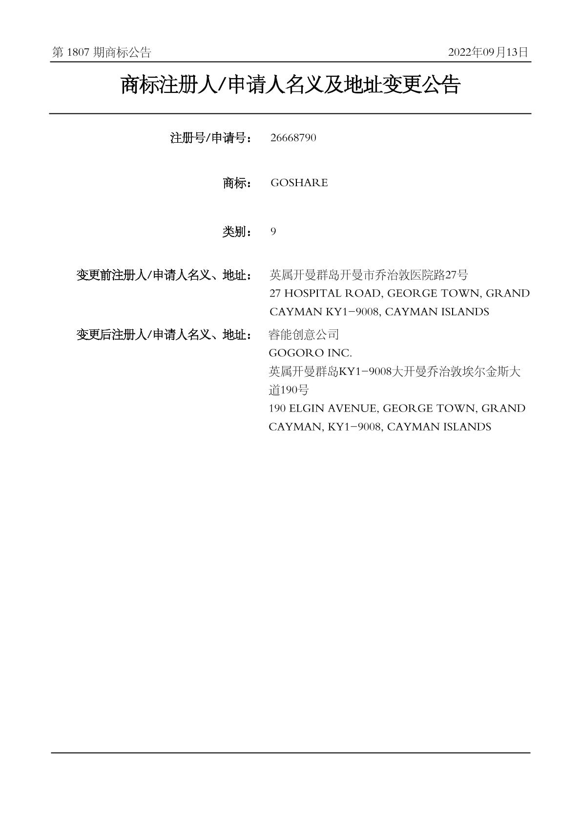 2022-08-26 变更商标申请人/注册人名义/地址 | 申请收文