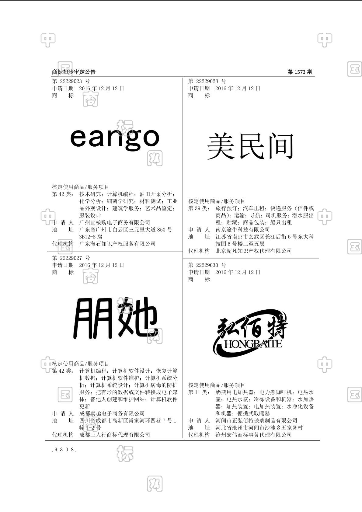 4209-技术研究;4210-油田开采分析;4211-化学分析;4212-细菌学研究;4214-材料测试;4216-工业品外观设计;4217-建筑学服务;4218-服装设计;4220-计算机编程;4224-艺术品鉴定 - 1573