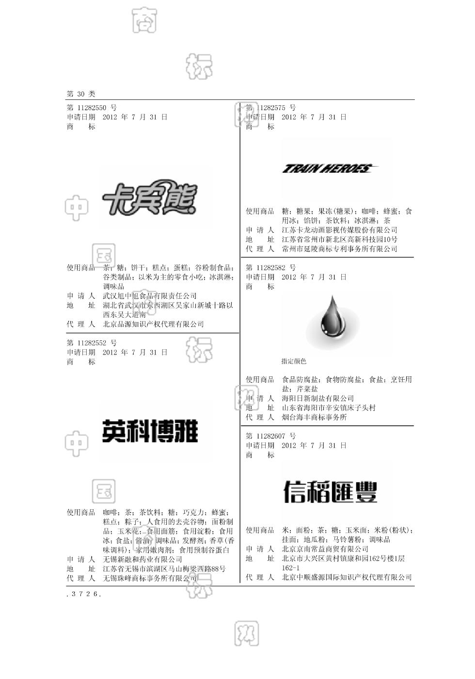 3001-咖啡;3002-茶;3002-茶饮料;3003-糖;3004-巧克力;3004-糖;3005-蜂蜜;3006-糕点;3007-粽子;3008-人食用的去壳谷物;3009-面粉制品;3010-玉米花;3011-食用面筋;3012-食用淀粉;3013-食用冰;3014-食盐;3015-酱油;3016-调味品;3017-发酵剂;3018-香草(香味调料);3019-家用嫩肉剂;3019-食用预制谷蛋白 - 1377