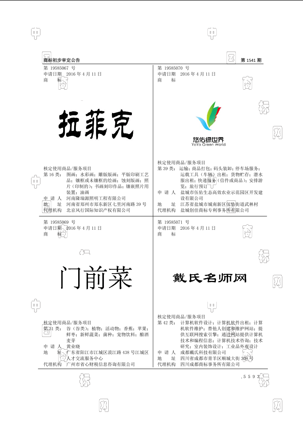 4209-技术研究;4216-工业品外观设计;4217-室内装饰设计;4220-提供互联网搜索引擎;4220-替他人创建和维护网站;4220-计算机技术咨询;4220-计算机软件出租;4220-计算机软件维护;4220-计算机软件设计;4220-通过网站提供计算机技术和编程信息 - 1541