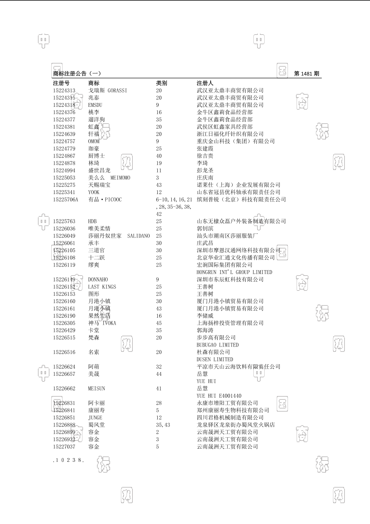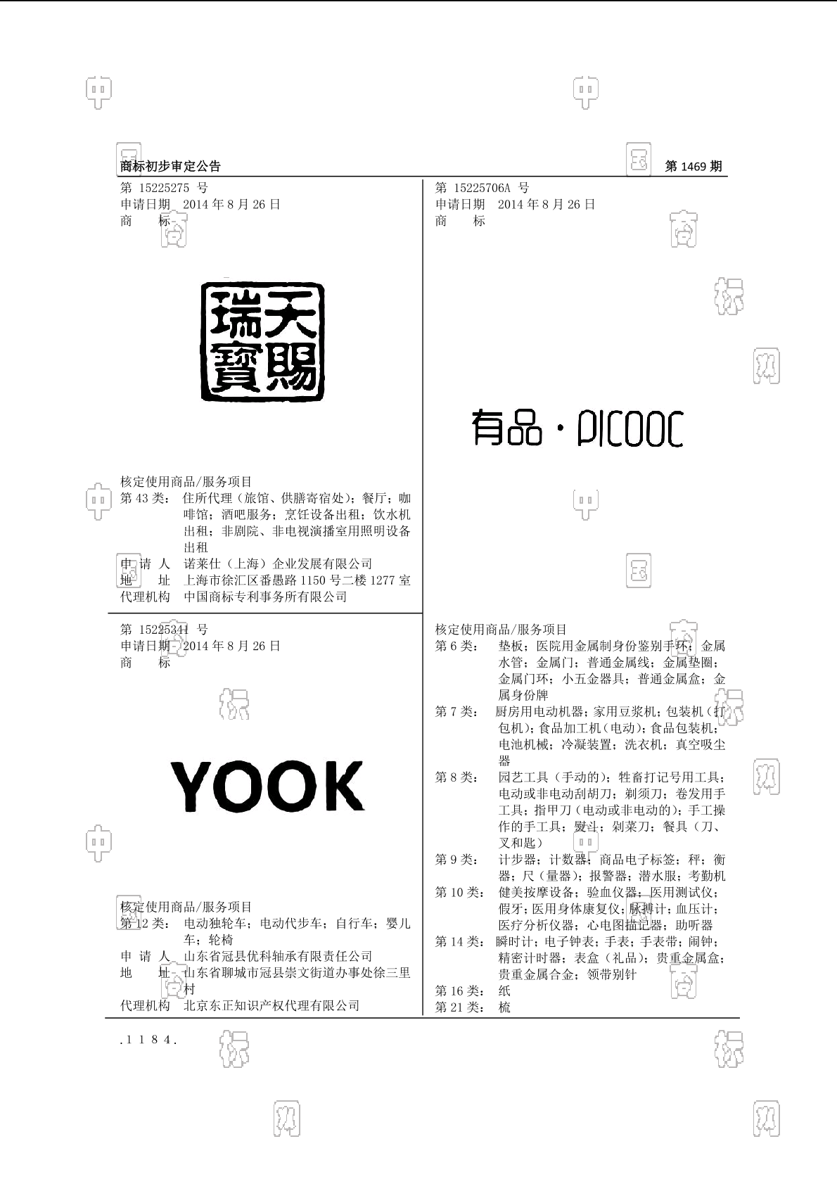 2001-家具;2001-床垫;2001-餐具柜;2002-非金属容器(存储和运输用);2003-木或塑料梯;2004-画框;2005-竹木工艺品;2006-树脂工艺品;2012-家具用非金属附件;2013-软垫 - 1469