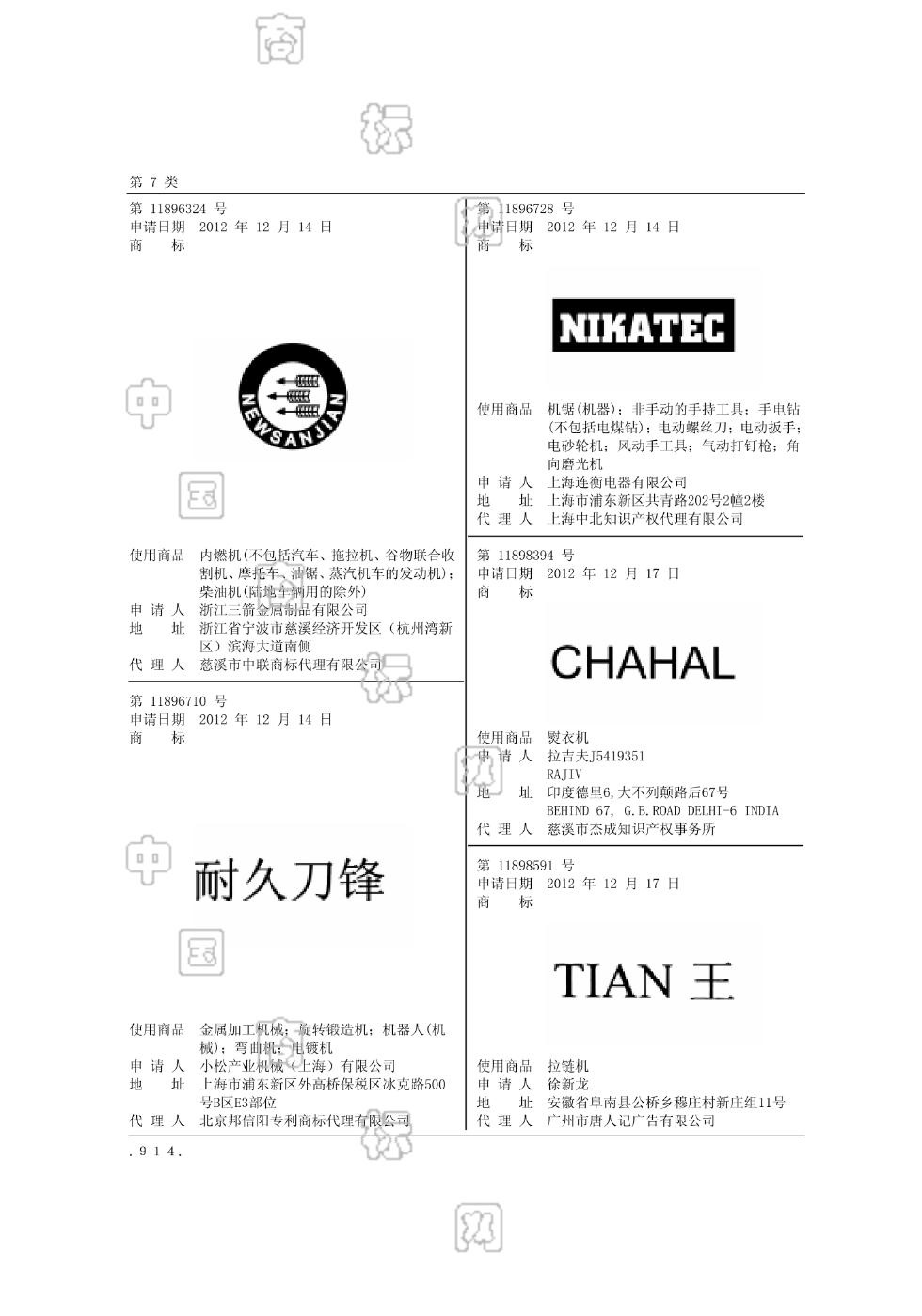 2012-12-14 商标注册申请 | 申请收文
