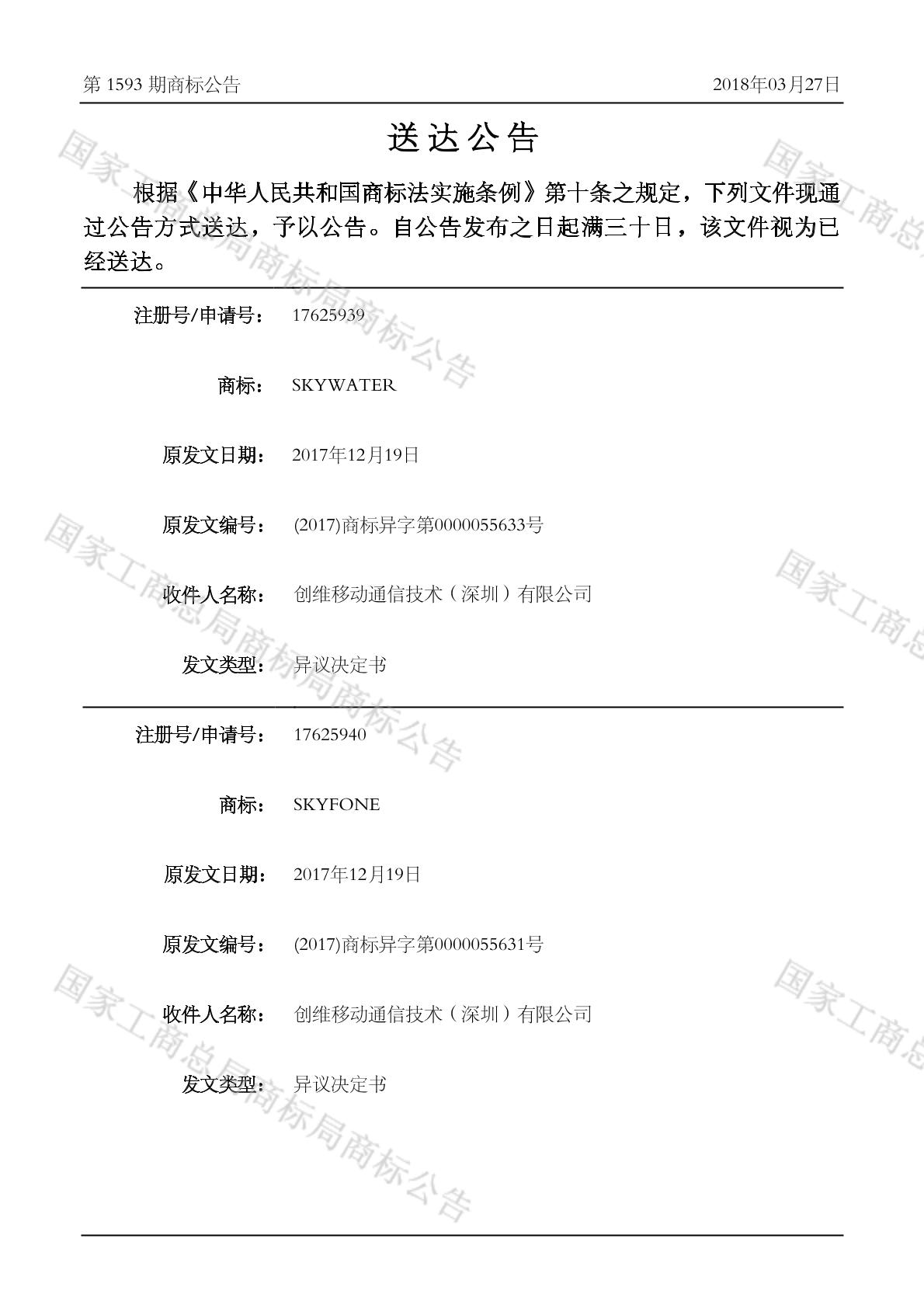 2018-04-05 商标异议申请 | 排版送达公告(异议决定书)