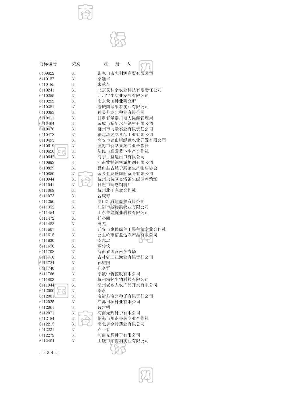 3103-新鲜的园艺草木植物;3103-植物园鲜草本植物;3103-自然花;3103-草皮;3103-装饰用干植物;3104-活动物;3104-活家禽;3104-活鱼;3104-蚕;3104-蚕种 - 1178