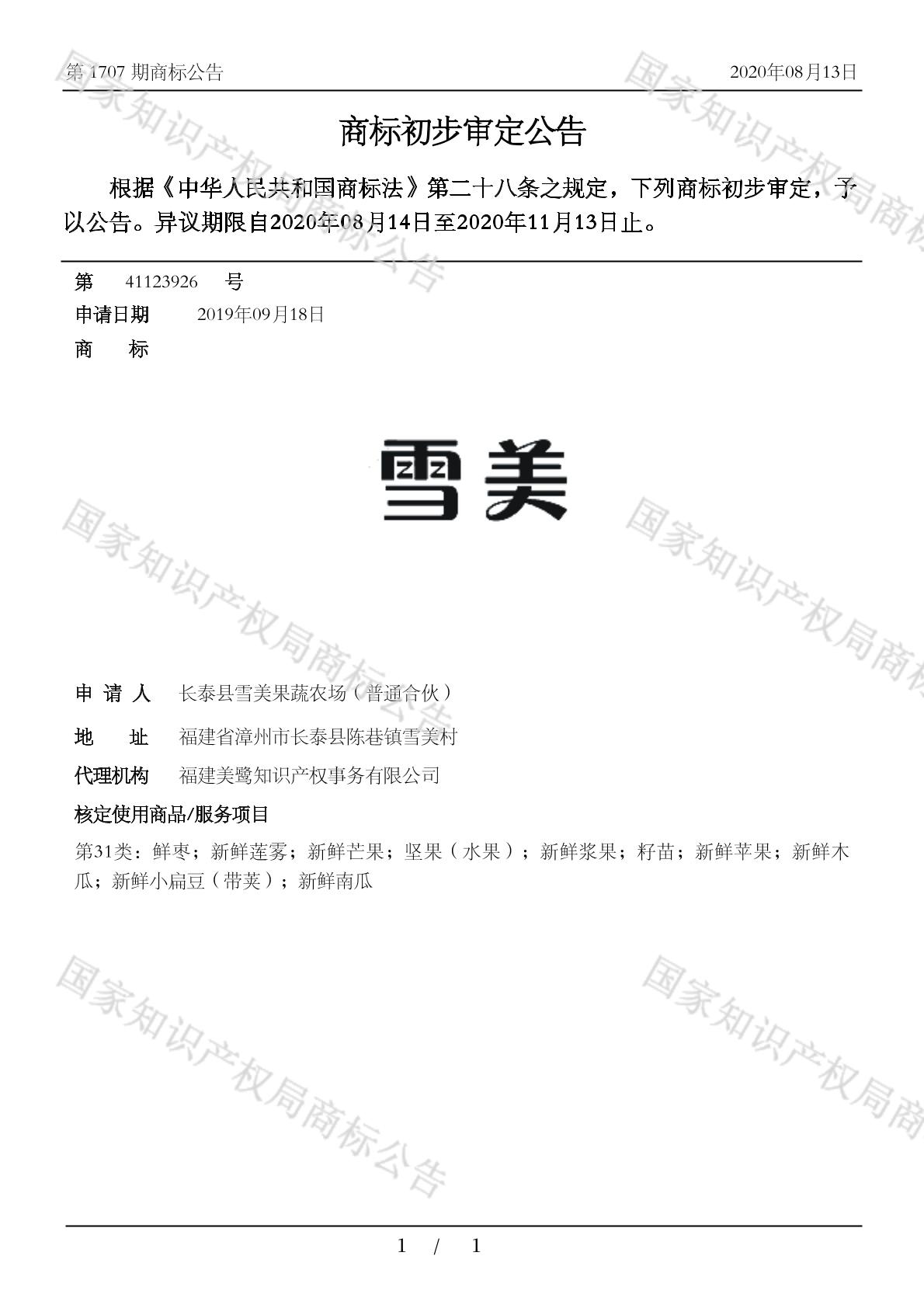 【雪美】商标详情