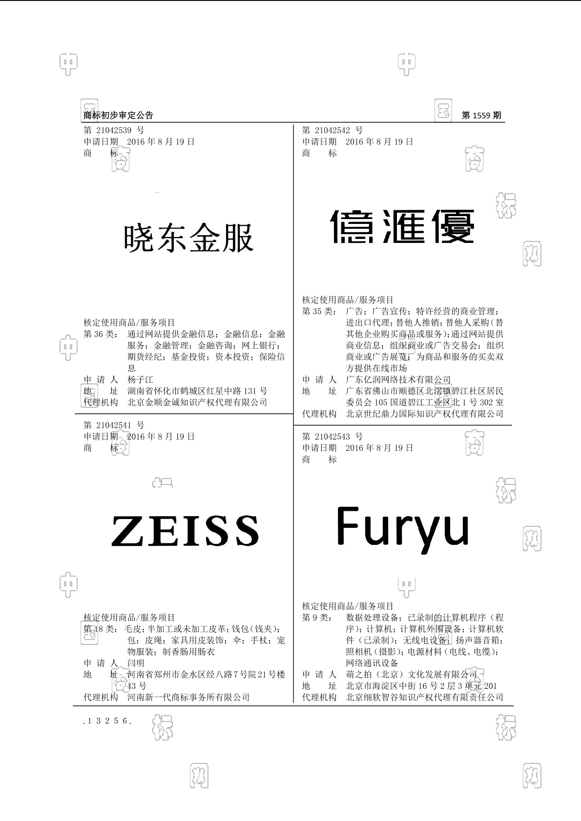 商标初步审定公告 2017-07-13 第1559期 查看公告