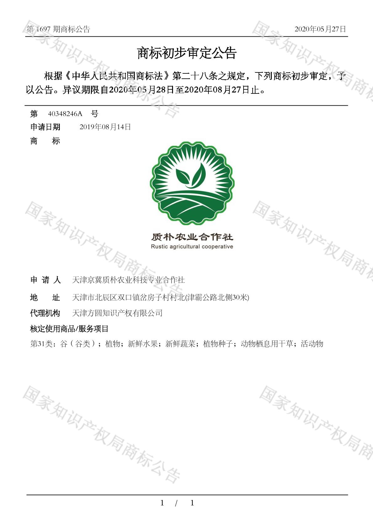 【质朴农业合作社 RUSTIC AGRICULTURAL COOPERATIVE】商标详情