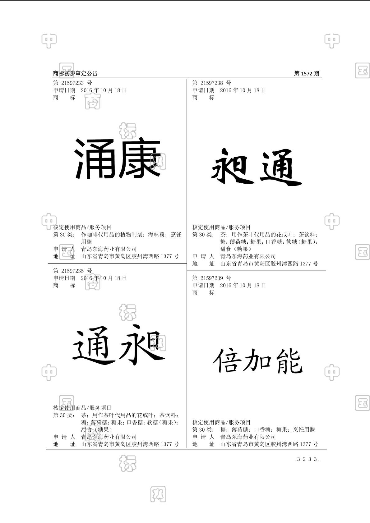 3001-作咖啡代用品的植物制剂;3002-用作茶叶代用品的花或叶;3002-茶饮料;3003-糖;3004-口香糖;3004-糖;3004-糖果;3004-薄荷糖;3008-谷类制品;3016-海味粉;3017-烹饪用酶 - 1572