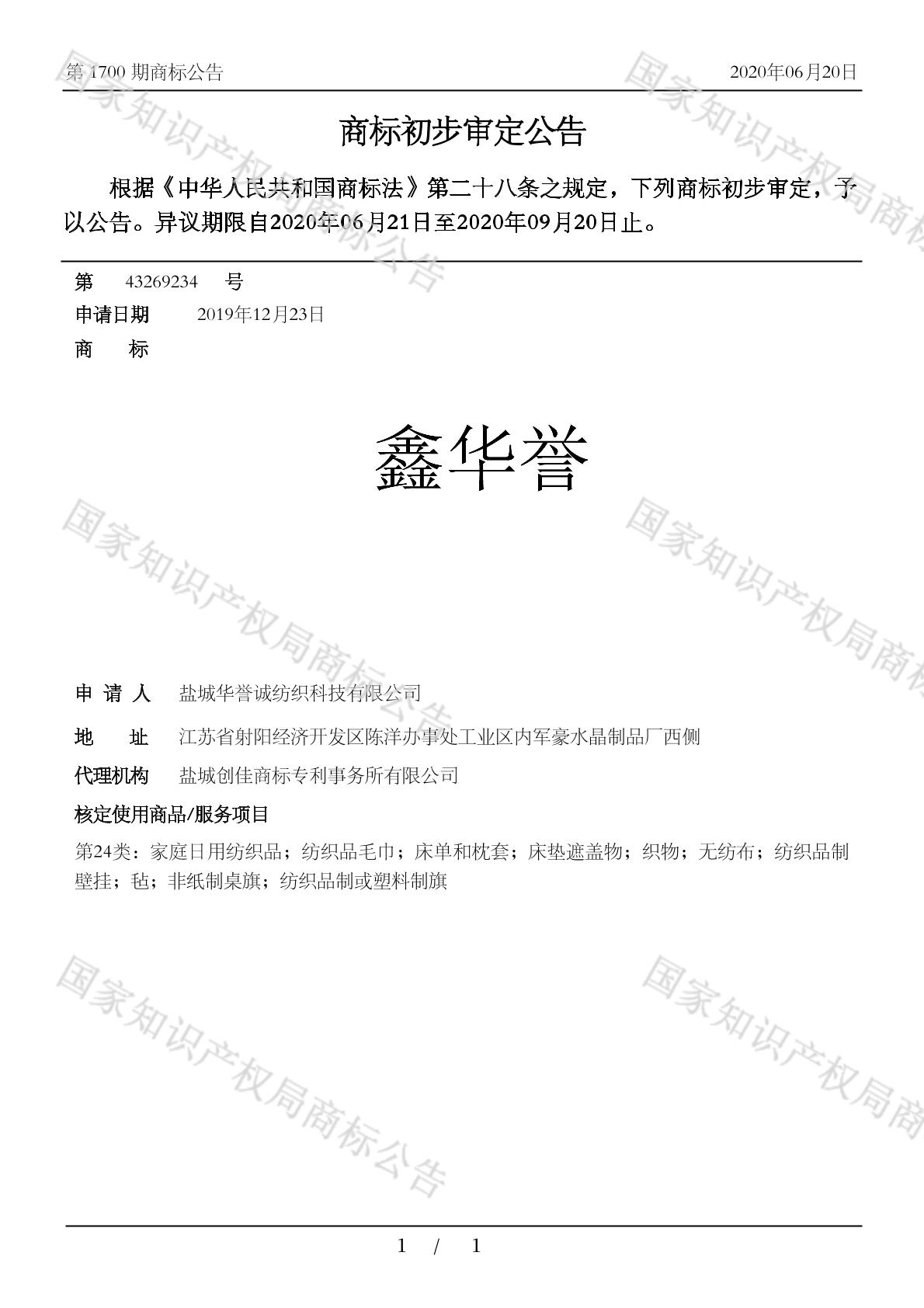 2401-织物;2402-无纺布;2403-纺织品制壁挂;2404-毡;2405-家庭日用纺织品;2405-纺织品毛巾;2406-家庭日用纺织品;2406-床单和枕套;2406-床垫遮盖物;2407-家庭日用纺织品;2407-非纸制桌旗;2410-纺织品制或塑料制旗 - 1700