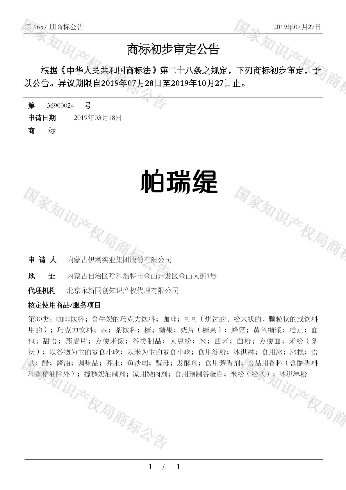 3001-可可(烘过的、粉末状的、颗粒状的或饮料用的);3001-含牛奶的巧克力饮料;3001-咖啡;3001-咖啡饮料;3001-巧克力饮料;3002-茶;3002-茶饮料;3003-糖;3004-奶片(糖果);3004-甜食;3004-糖;3004-糖果;3005-蜂蜜;3005-黄色糖浆;3006-以米为主的零食小吃;3006-以谷物为主的零食小吃;3006-燕麦片;3006-甜食;3006-糕点;3006-面包;3007-方便米饭;3008-大豆粉;3008-米;3008-米粉(粉状);3008-西米;3008-谷类制品;3008-面粉;3009-方便面;3009-米粉(条状);3010-以米为主的零食小吃;3010-以谷物为主的零食小吃;3012-食用淀粉;3013-冰棍;3013-冰淇淋;3013-冰淇淋粉;3013-食用冰;3014-食盐;3015-酱油;3015-醋;3016-芥末;3016-调味品;3016-鱼沙司;3017-发酵剂;3017-酵母;3018-食品用香料(含醚香料和香精油除外);3018-食用芳香剂;3019-家用嫩肉剂;3019-搅稠奶油制剂;3019-食用预制谷蛋白 - 1657