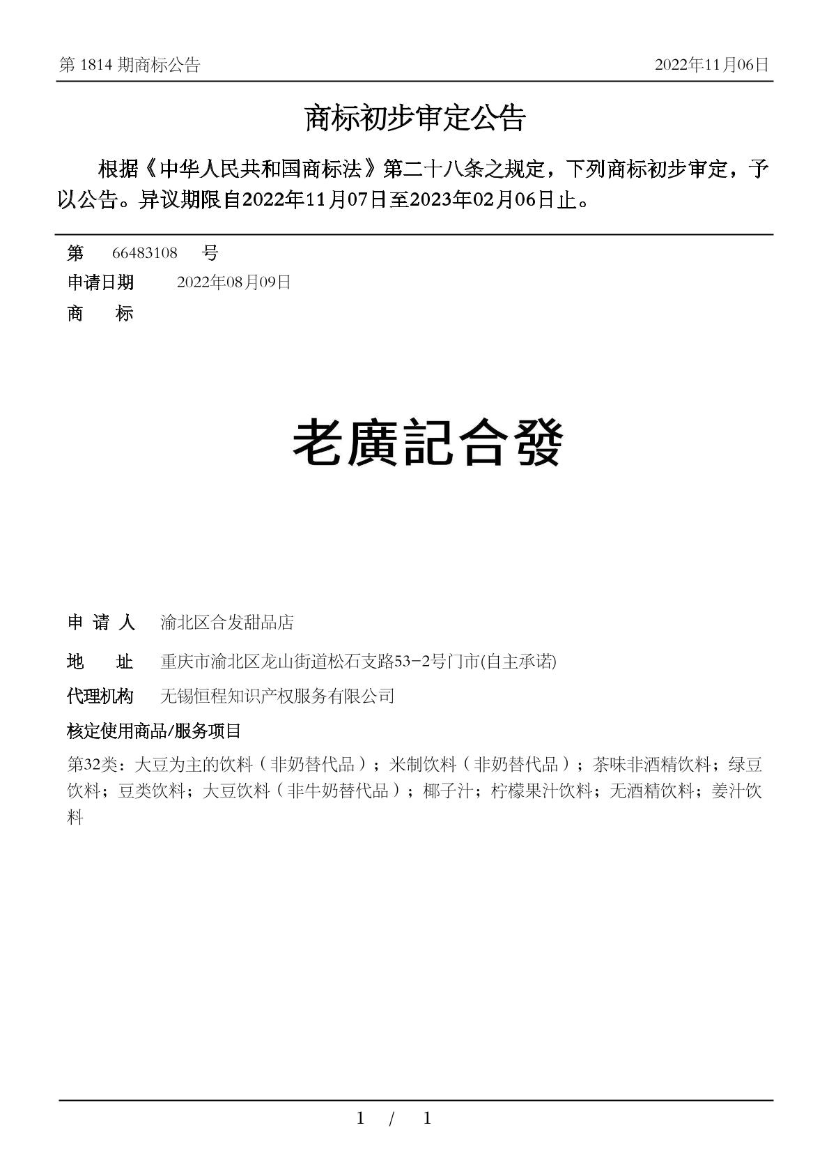 3202-大豆为主的饮料(非奶替代品);3202-大豆饮料(非牛奶替代品);3202-姜汁饮料;3202-无酒精饮料;3202-柠檬果汁饮料;3202-椰子汁;3202-米制饮料(非奶替代品);3202-绿豆饮料;3202-茶味非酒精饮料;3202-豆类饮料 - 1814