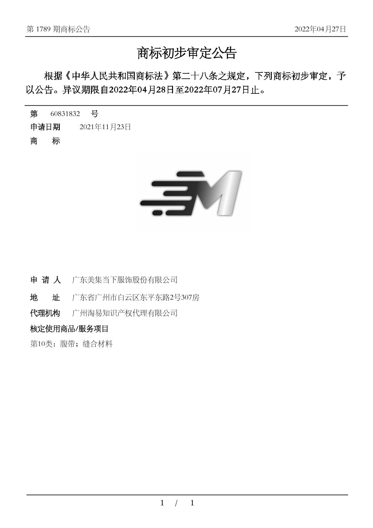 2021-11-23 商标注册申请 | 申请收文
