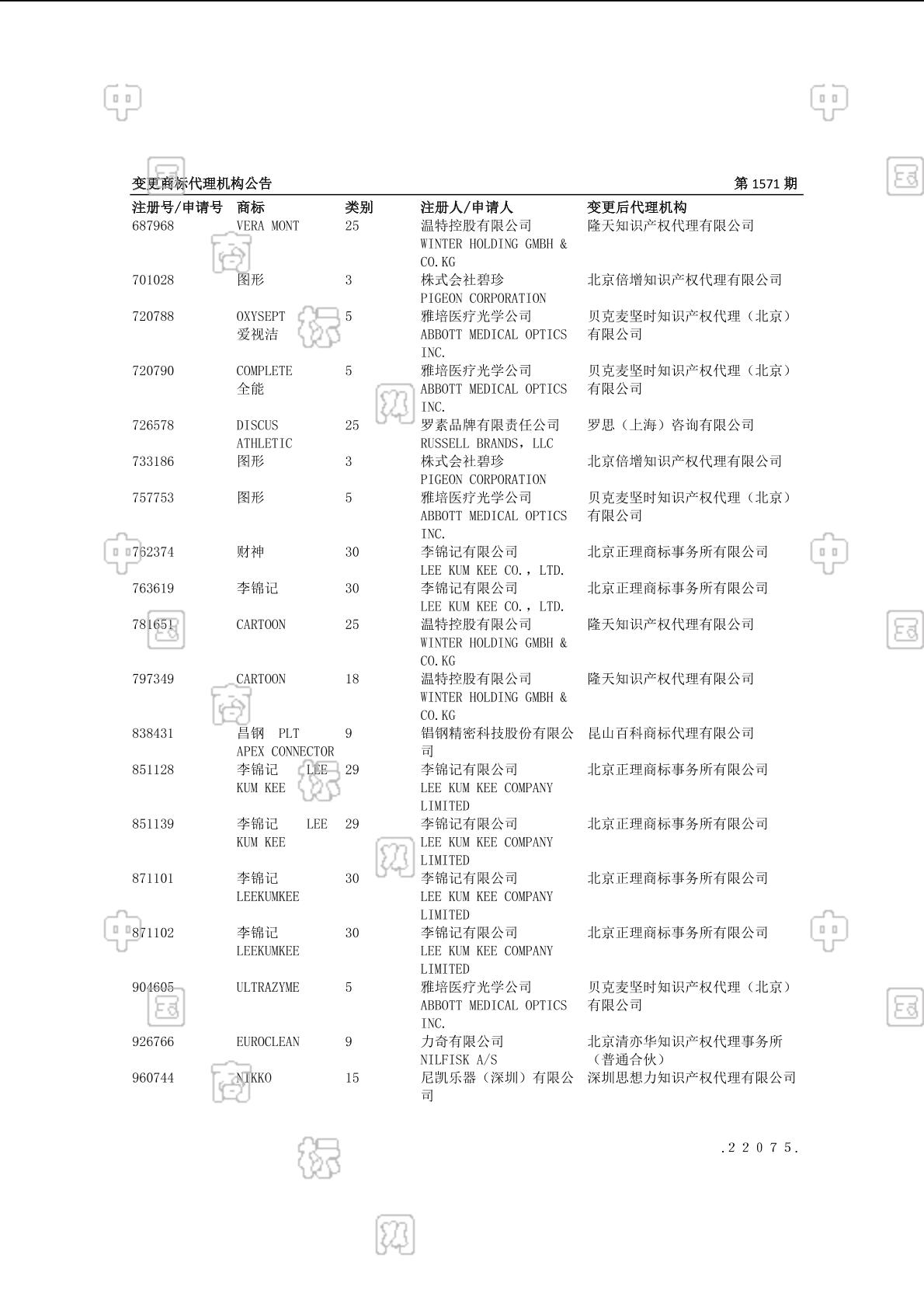 变更商标代理机构公告 2017-10-13 第1571期 查看公告