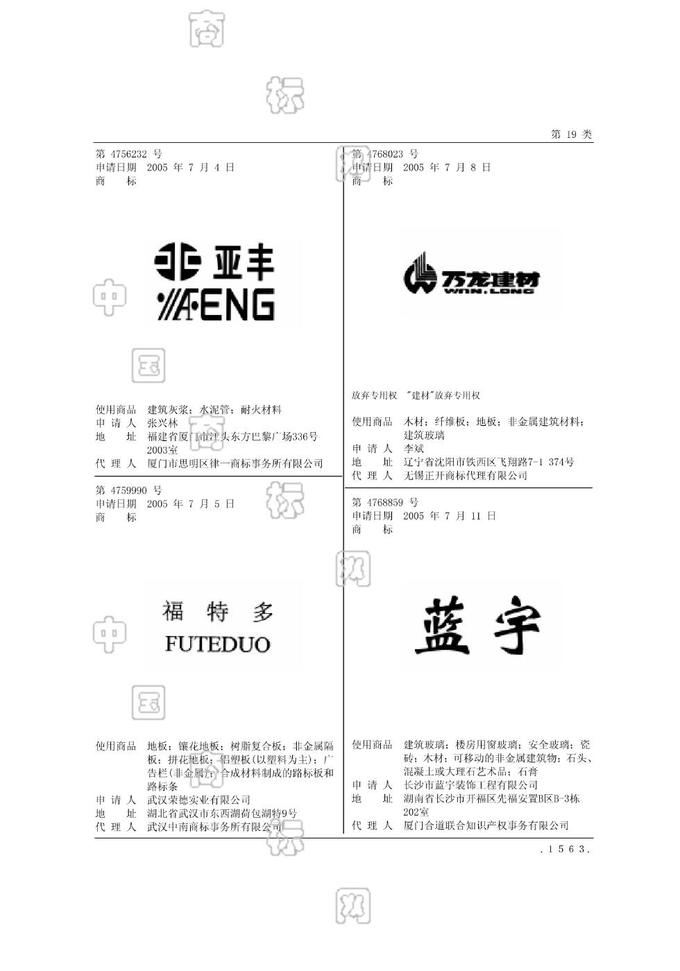 1901-地板;1902-建筑灰浆;1905-水泥管;1907-耐火材料;1909-建筑用塑料条;1909-建筑用塑料板;1909-建筑用塑料管;1909-非金属检修孔盖;1909-非金属管道;1912-非金属建筑涂面材料 - 1151