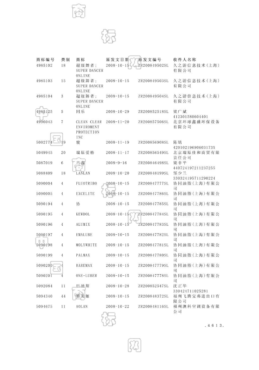 2009-05-21 商标转让 | 后台打印转让核准证明