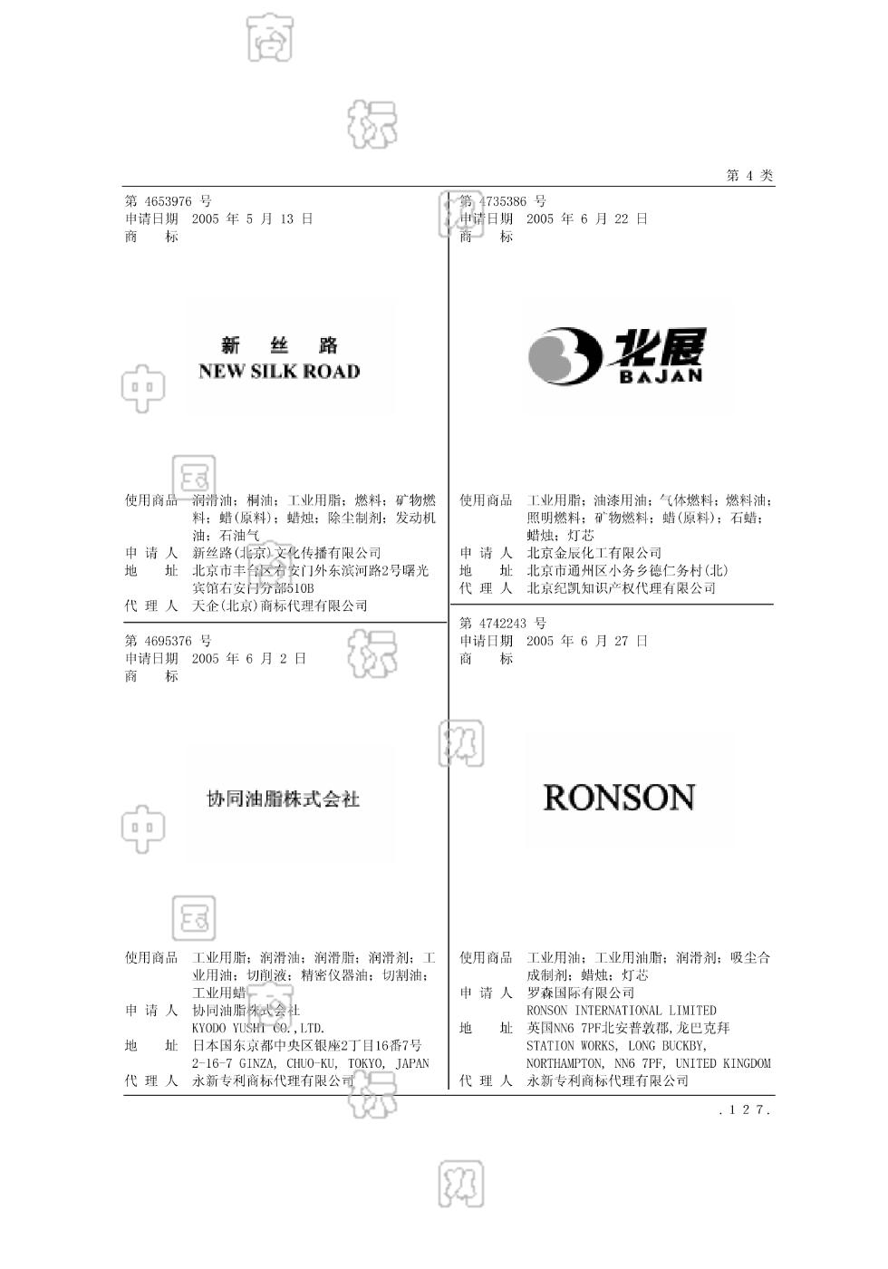 0401-发动机油;0401-工业用脂;0401-桐油;0401-润滑油;0402-燃料;0402-石油气;0403-矿物燃料;0404-蜡(原料);0405-蜡烛;0406-除尘制剂 - 1148