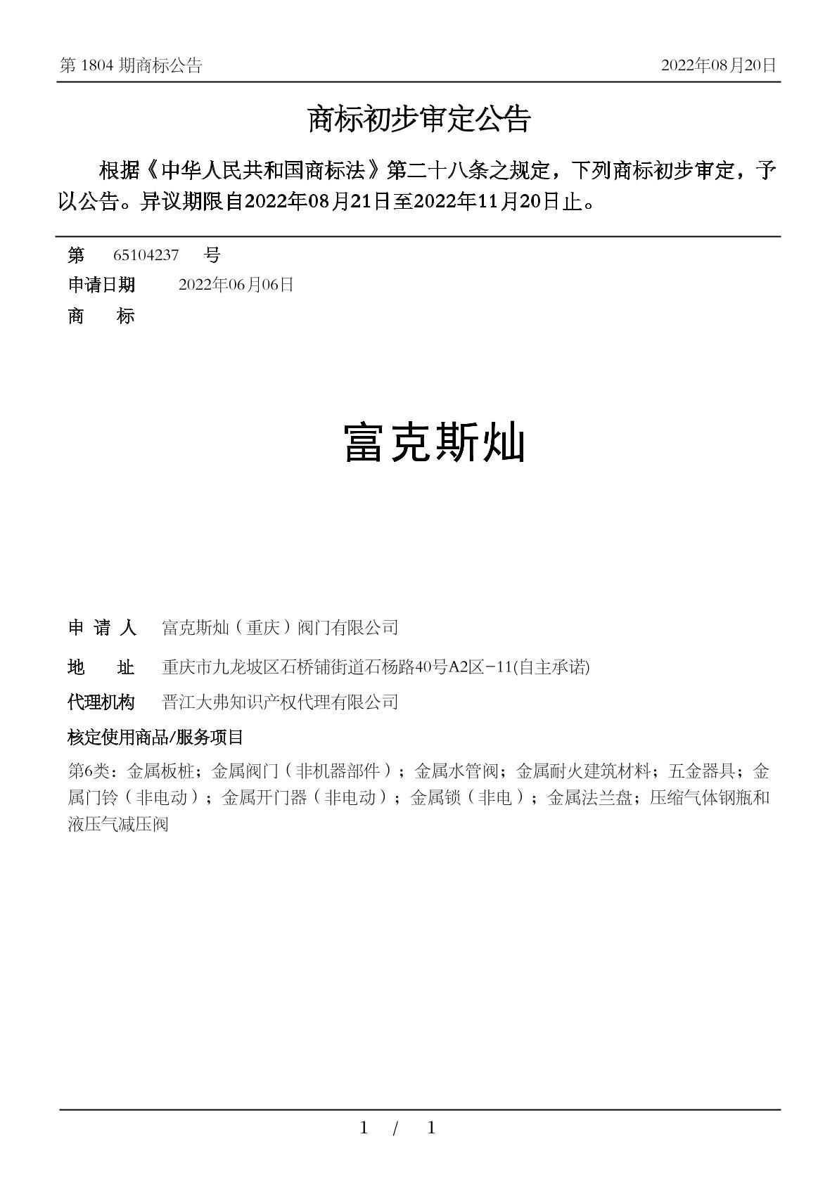 0601-金属板桩;0602-金属水管阀;0602-金属阀门(非机器部件);0603-金属耐火建筑材料;0607-五金器具;0608-五金器具;0608-金属开门器(非电动);0609-五金器具;0609-金属门铃(非电动);0610-金属锁(非电);0612-金属法兰盘;0613-压缩气体钢瓶和液压气减压阀 - 1804