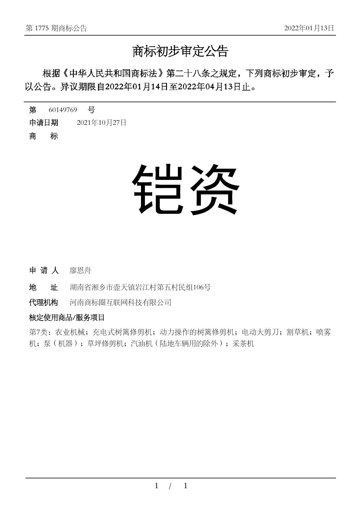 【铠资】商标详情