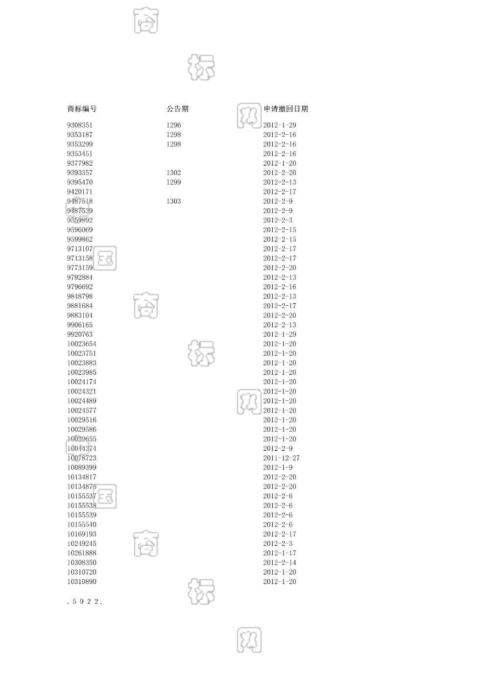 商标注册申请撤回公告 2012-04-06 第1306期 查看公告