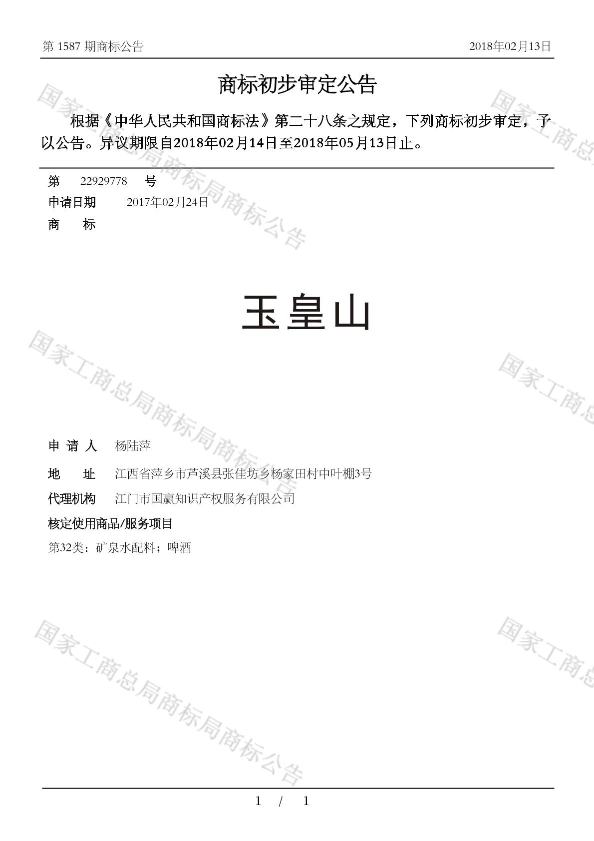 3201-啤酒;3202-富含蛋白质的运动饮料;3202-无酒精果汁饮料;3202-果汁;3202-水(饮料);3202-矿泉水(饮料);3202-苏打水;3202-豆类饮料;3202-餐用矿泉水;3203-矿泉水配料 - 1587