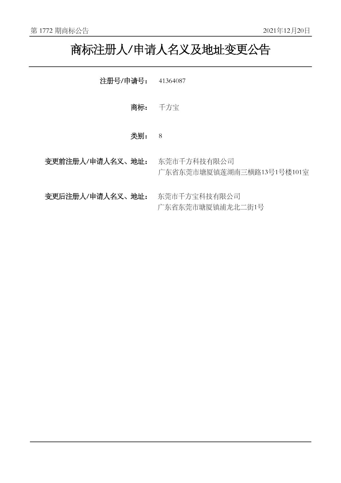 2021-12-16 变更商标申请人/注册人名义/地址 | 核准证明打印发送