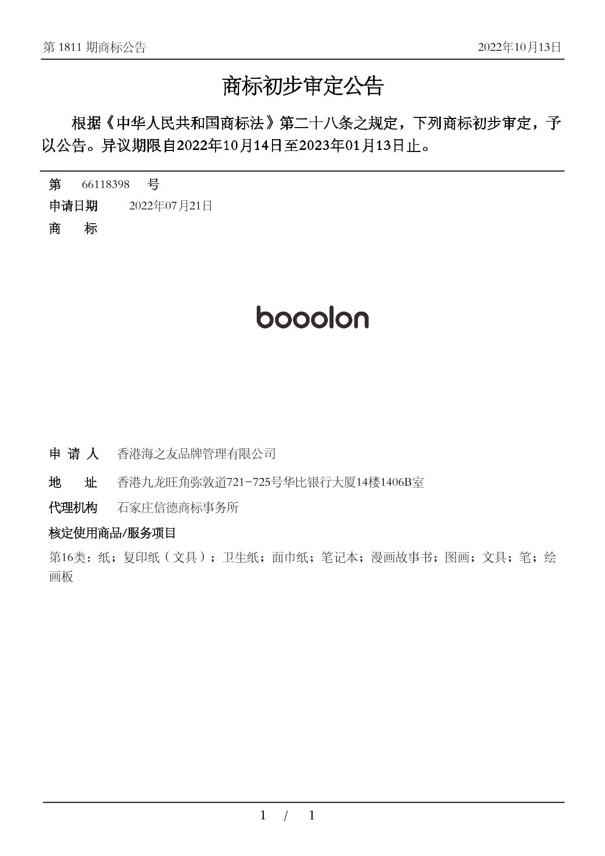 【BOOOLON】商标详情