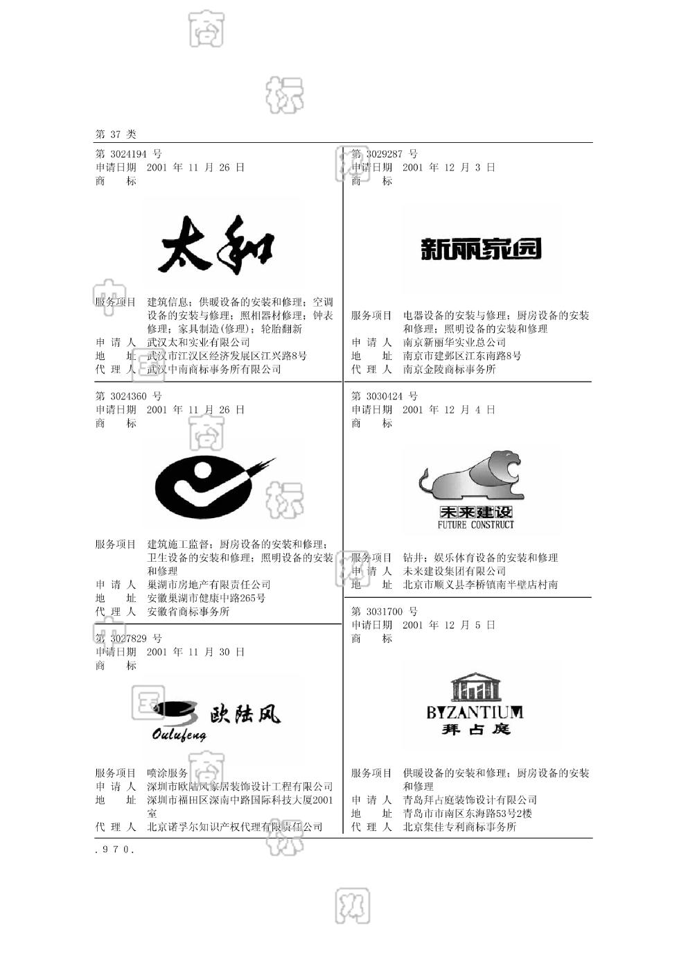 3701-建筑信息;3702-商业摊位及商店的建筑;3704-室内装璜修理;3705-供暖设备的安装和修理;3706-空调设备的安装与修理;3707-车辆保养;3710-照相器材修理;3711-钟表修理;3714-轮胎翻新;3715-家具制造(修理) - 903