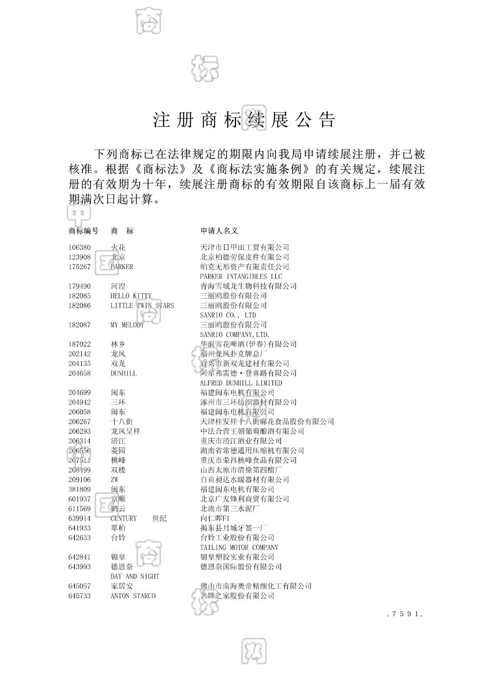 注册商标续展公告 2004-01-21 第912期 查看公告