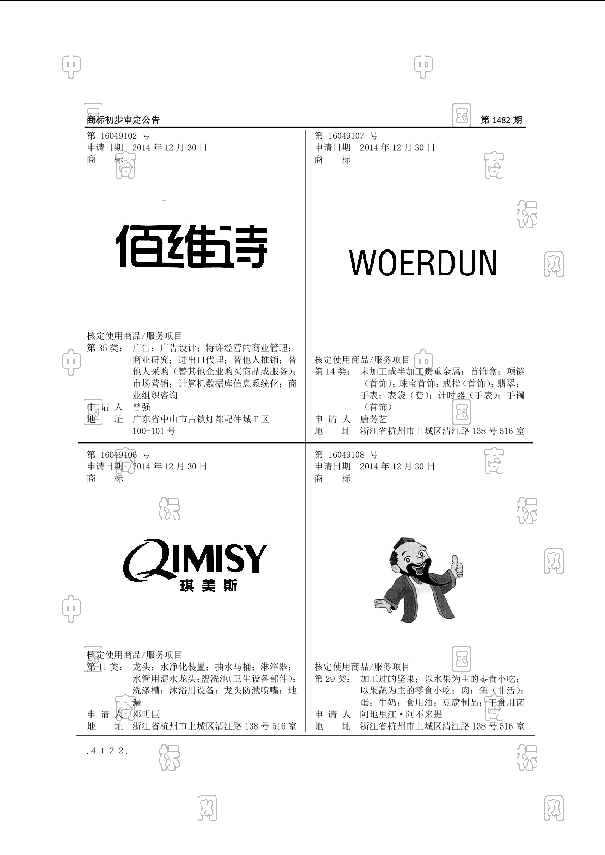 1401-未加工或半加工贵重金属;1402-首饰盒;1403-戒指(首饰);1403-手镯(首饰);1403-珠宝首饰;1403-翡翠;1403-项链(首饰);1404-手表;1404-表袋(套);1404-计时器(手表) - 1482