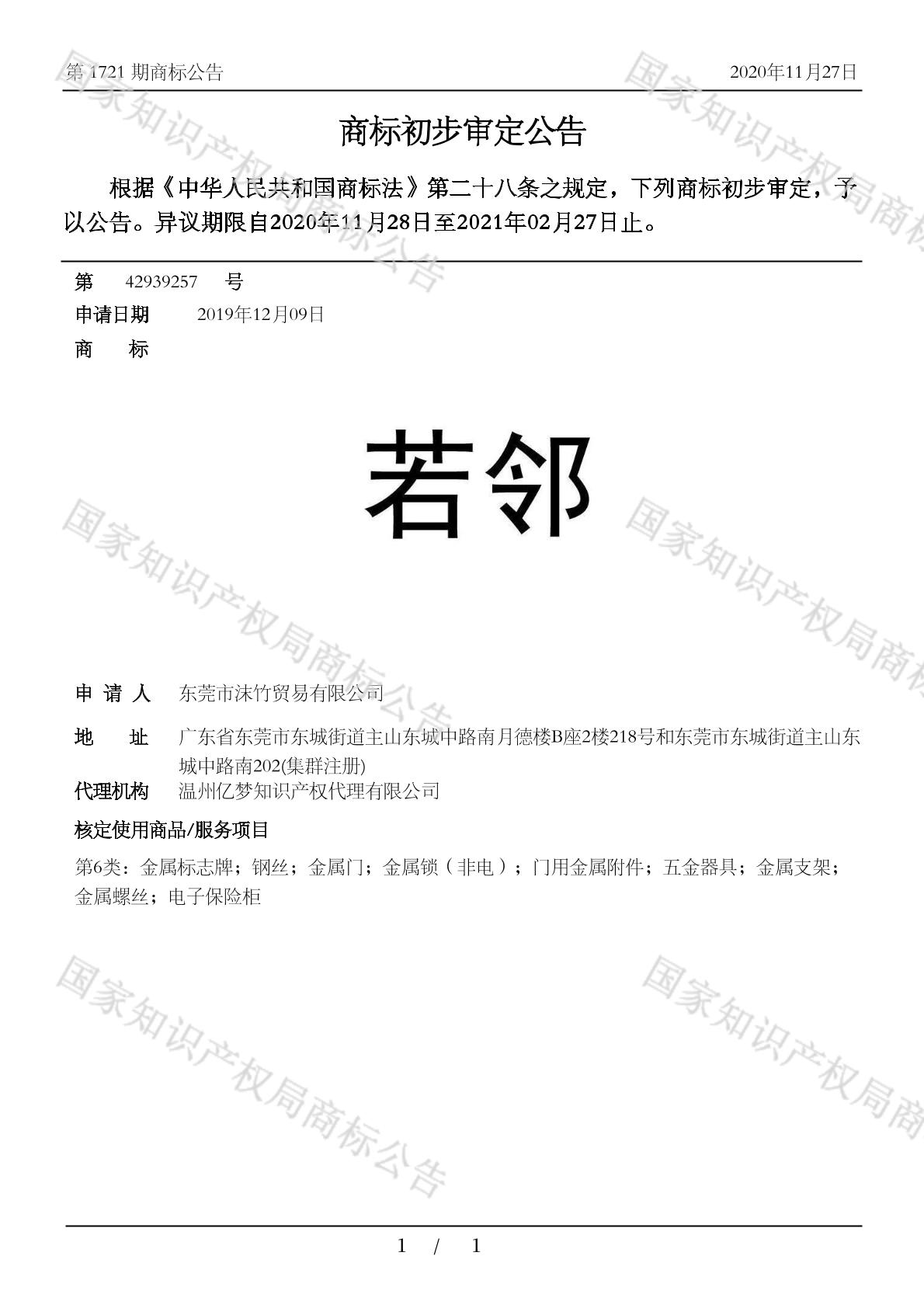 0601-金属支架;0602-金属水管阀;0603-金属门;0605-钢丝;0607-五金器具;0607-金属螺丝;0608-五金器具;0608-门用金属附件;0609-五金器具;0610-金属锁(非电);0611-电子保险柜;0614-金属标志牌 - 1721