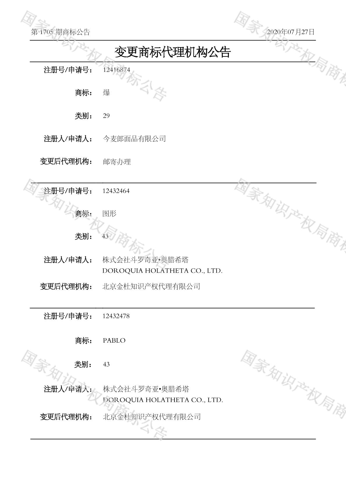 2020-07-14 变更商标代理人 | 核准通知打印发送