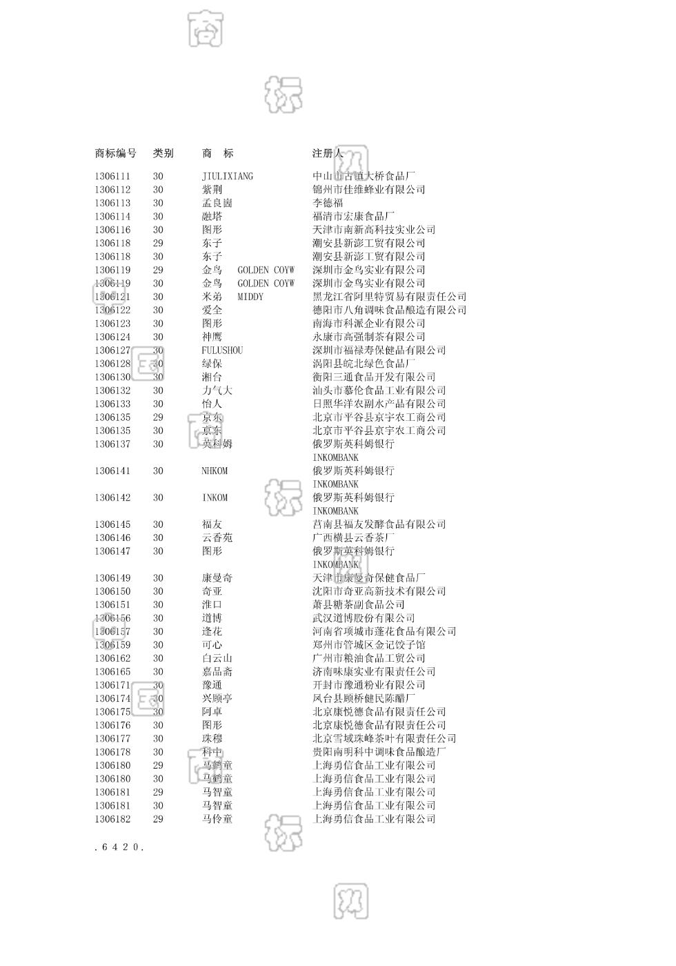 3001 , 3002 , 3004 , 3006 , 3013 , 3016 3001-可可产品,