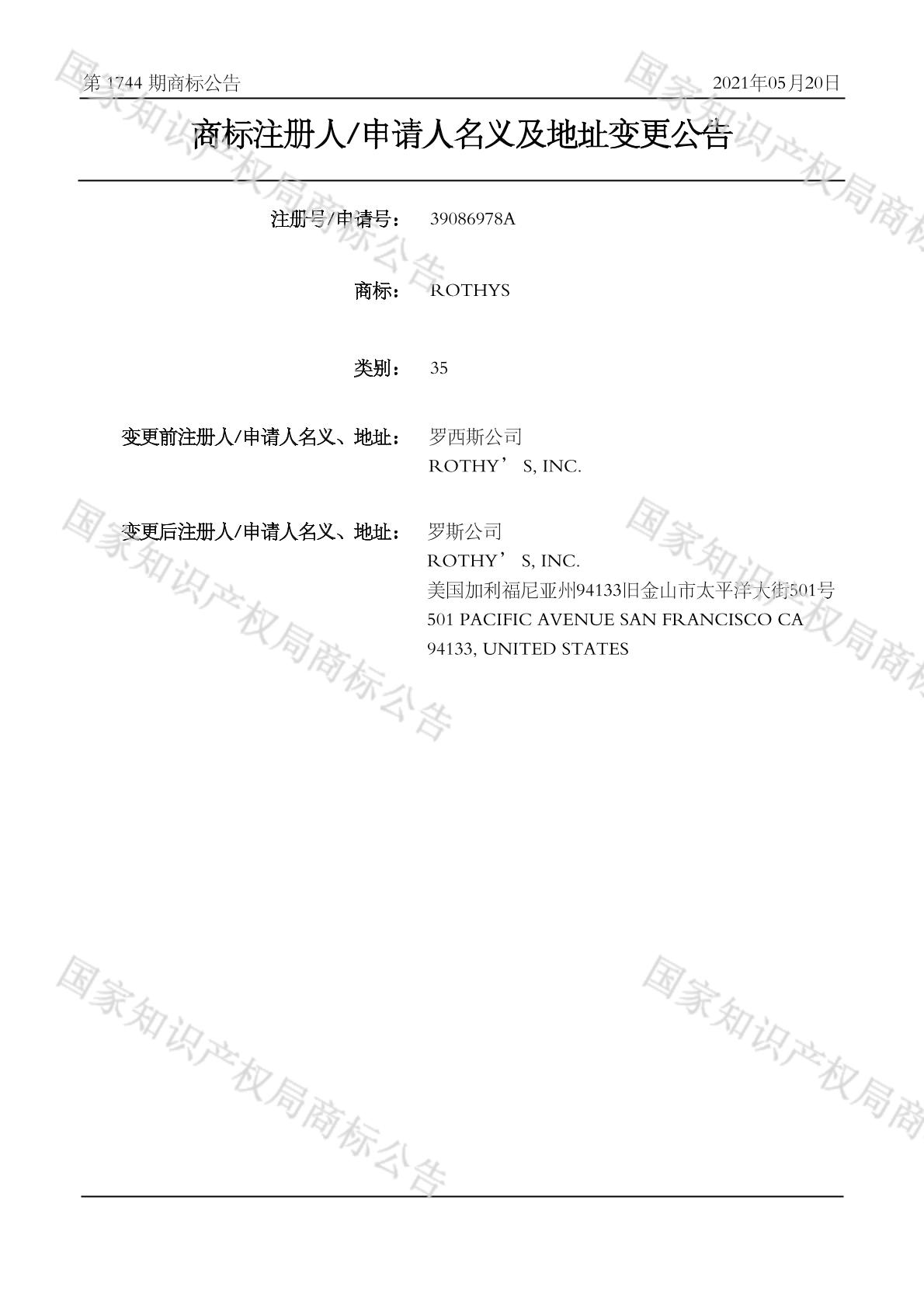 2021-05-12 变更商标申请人/注册人名义/地址 | 核准证明打印发送