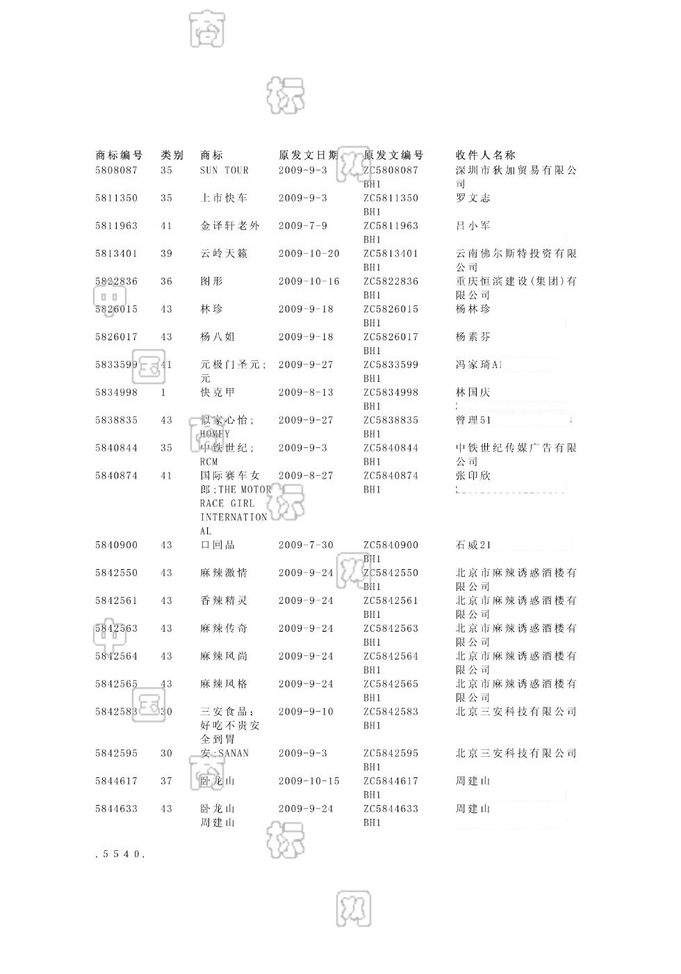 2009-09-10 商标注册申请 | 打印驳回通知