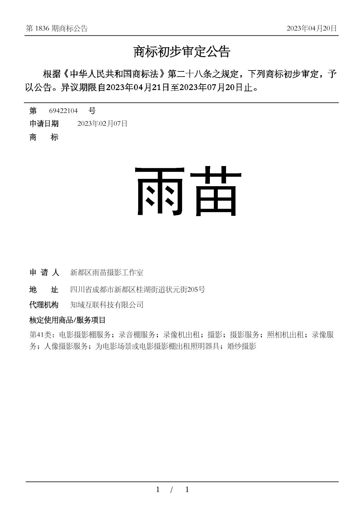 4105-为电影场景或电影摄影棚出租照明器具;4105-人像摄影服务;4105-婚纱摄影;4105-录像服务;4105-录像机出租;4105-录音棚服务;4105-摄影;4105-摄影服务;4105-照相机出租;4105-电影摄影棚服务 - 1836