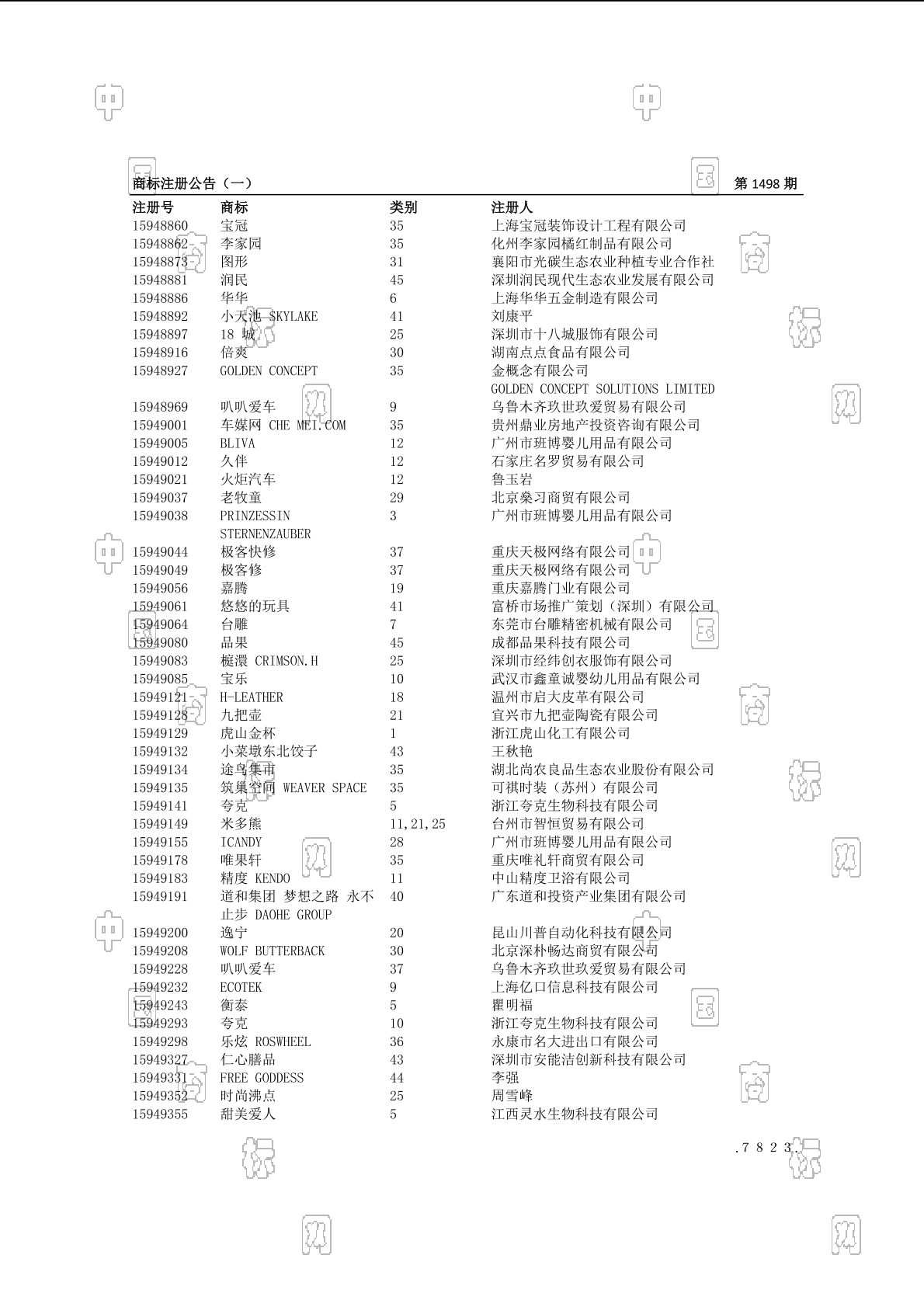 1801-仿皮革;1801-动物皮;1801-裘皮;1802-家具用皮装饰;1802-手提包;1802-旅行包;1802-皮肩带;1804-伞;1805-手杖;1806-马具配件 - 1486