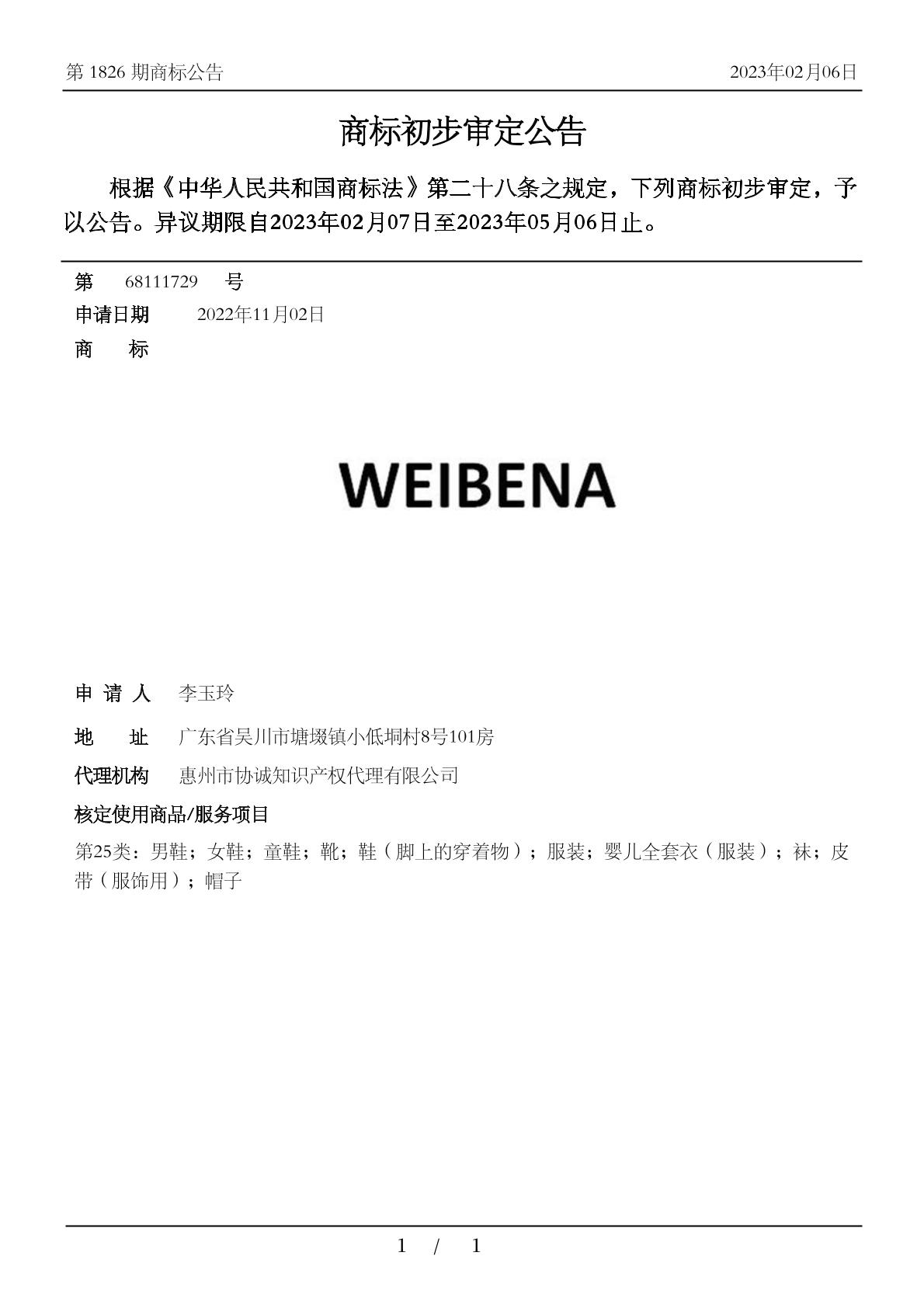 2501-服装;2502-婴儿全套衣(服装);2502-服装;2503-服装;2504-服装;2505-服装;2507-女鞋;2507-男鞋;2507-童鞋;2507-靴;2507-鞋(脚上的穿着物);2508-帽子;2509-袜;2512-皮带(服饰用) - 1826