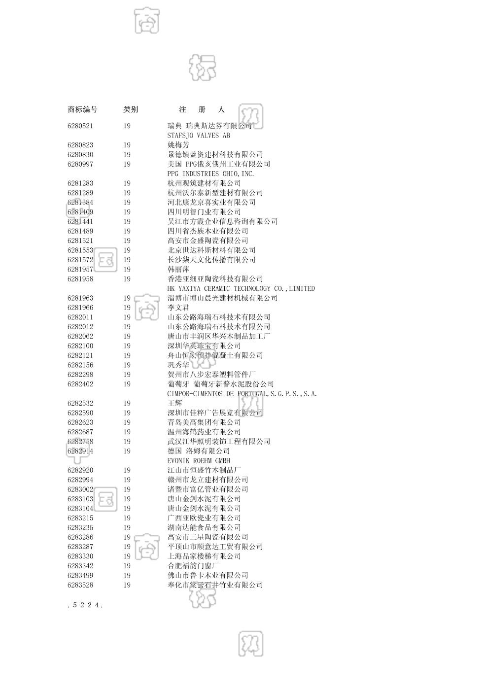 1901-木地板;1902-人造石;1904-水泥;1906-瓷砖;1907-耐火纤维;1909-非金属门;1910-广告栏(非金属);1910-非金属广告栏;1911-安全玻璃;1912-非金属建筑涂面材料 - 1194