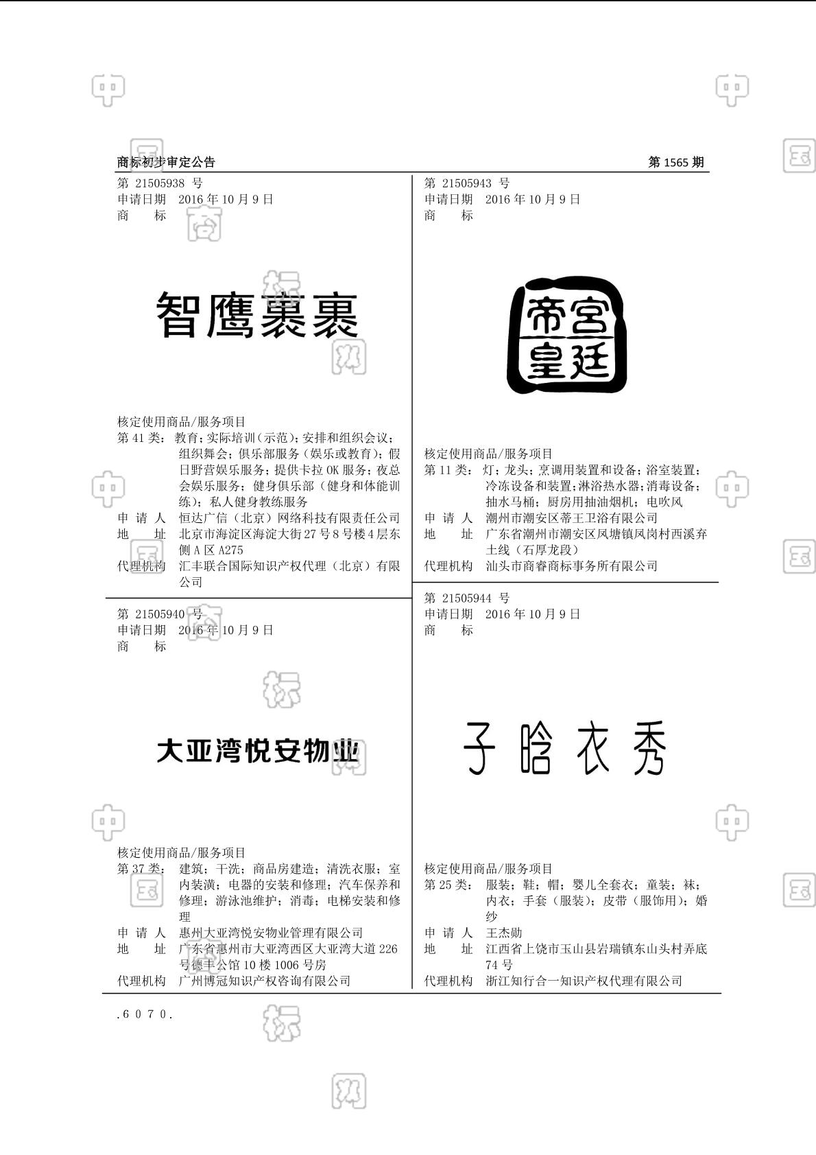 4101-实际培训(示范);4101-教育;4102-安排和组织会议;4102-组织舞会;4105-俱乐部服务(娱乐或教育);4105-假日野营娱乐服务;4105-健身俱乐部(健身和体能训练);4105-夜总会娱乐服务;4105-提供卡拉OK服务;4105-私人健身教练服务 - 1565