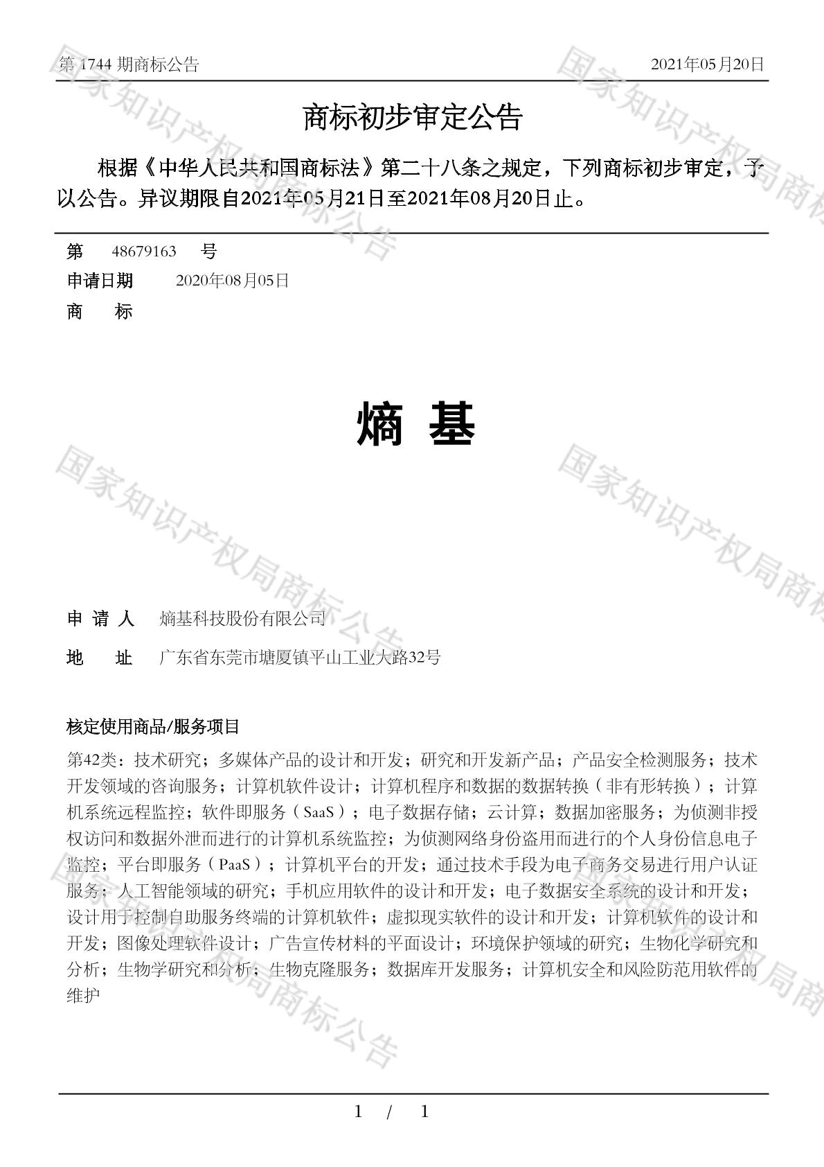 4209-产品安全检测服务;4209-多媒体产品的设计和开发;4209-技术开发领域的咨询服务;4209-技术研究;4209-环境保护领域的研究;4209-研究和开发新产品;4211-生物化学研究和分析;4212-生物克隆服务;4212-生物学研究和分析;4216-多媒体产品的设计和开发;4220-为侦测网络身份盗用而进行的个人身份信息电子监控;4220-为侦测非授权访问和数据外泄而进行的计算机系统监控;4220-云计算;4220-人工智能领域的研究;4220-图像处理软件设计;4220-多媒体产品的设计和开发;4220-平台即服务(PaaS);4220-手机应用软件的设计和开发;4220-数据加密服务;4220-数据库开发服务;4220-电子数据存储;4220-电子数据安全系统的设计和开发;4220-虚拟现实软件的设计和开发;4220-计算机安全和风险防范用软件的维护;4220-计算机平台的开发;4220-计算机程序和数据的数据转换(非有形转换);4220-计算机系统远程监控;4220-计算机软件的设计和开发;4220-计算机软件设计;4220-设计用于控制自助服务终端的计算机软件;4220-软件即服务(SaaS);4220-通过技术手段为电子商务交易进行用户认证服务;4227-广告宣传材料的平面设计 - 1744