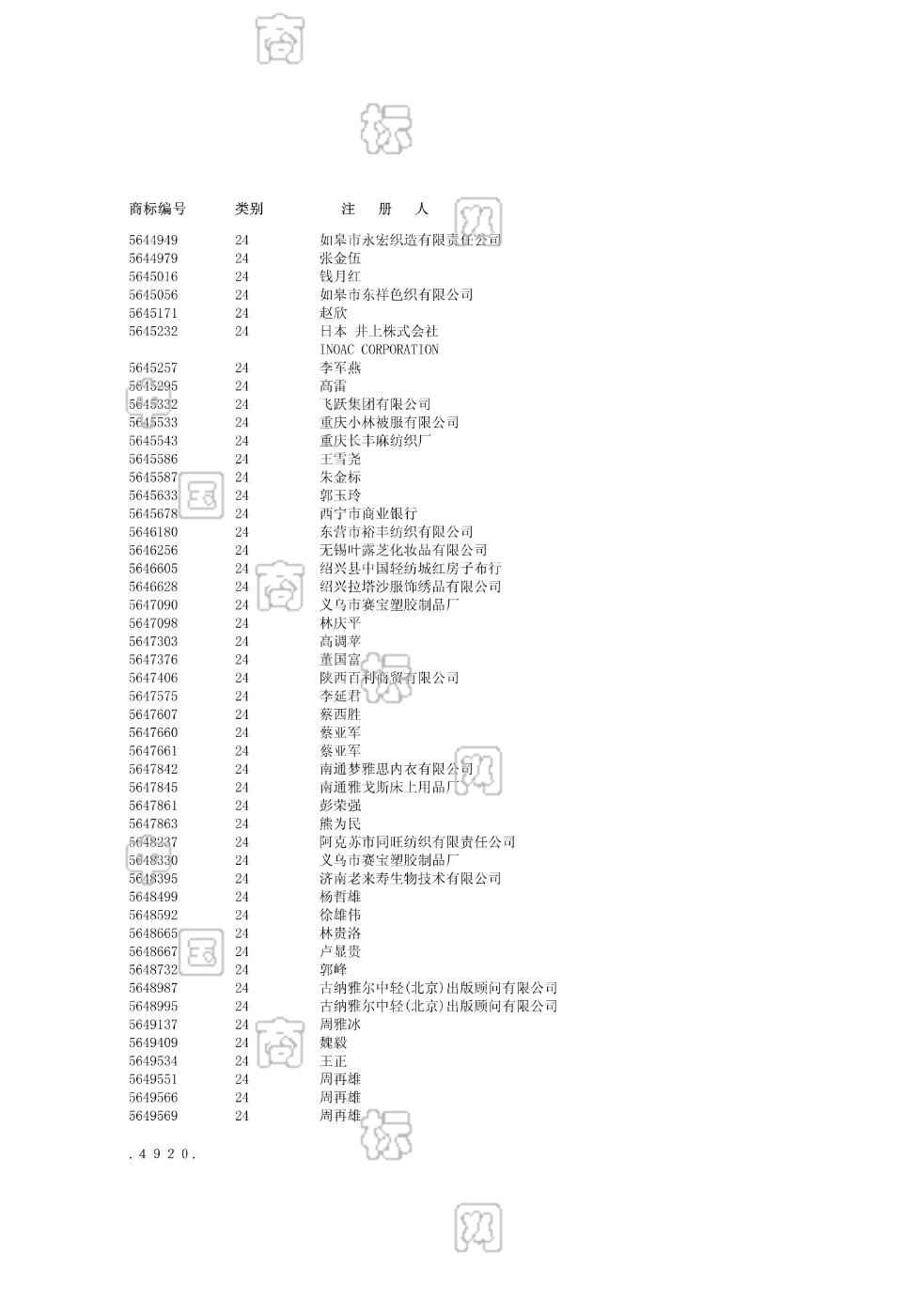 2401-印花丝织品;2401-布;2401-棉织品;2401-毛织品;2401-纺织纤维织物;2401-纺织织物;2401-麻布;2405-纺织品毛巾;2406-床罩;2407-纺织品制窗帘圈 - 1176