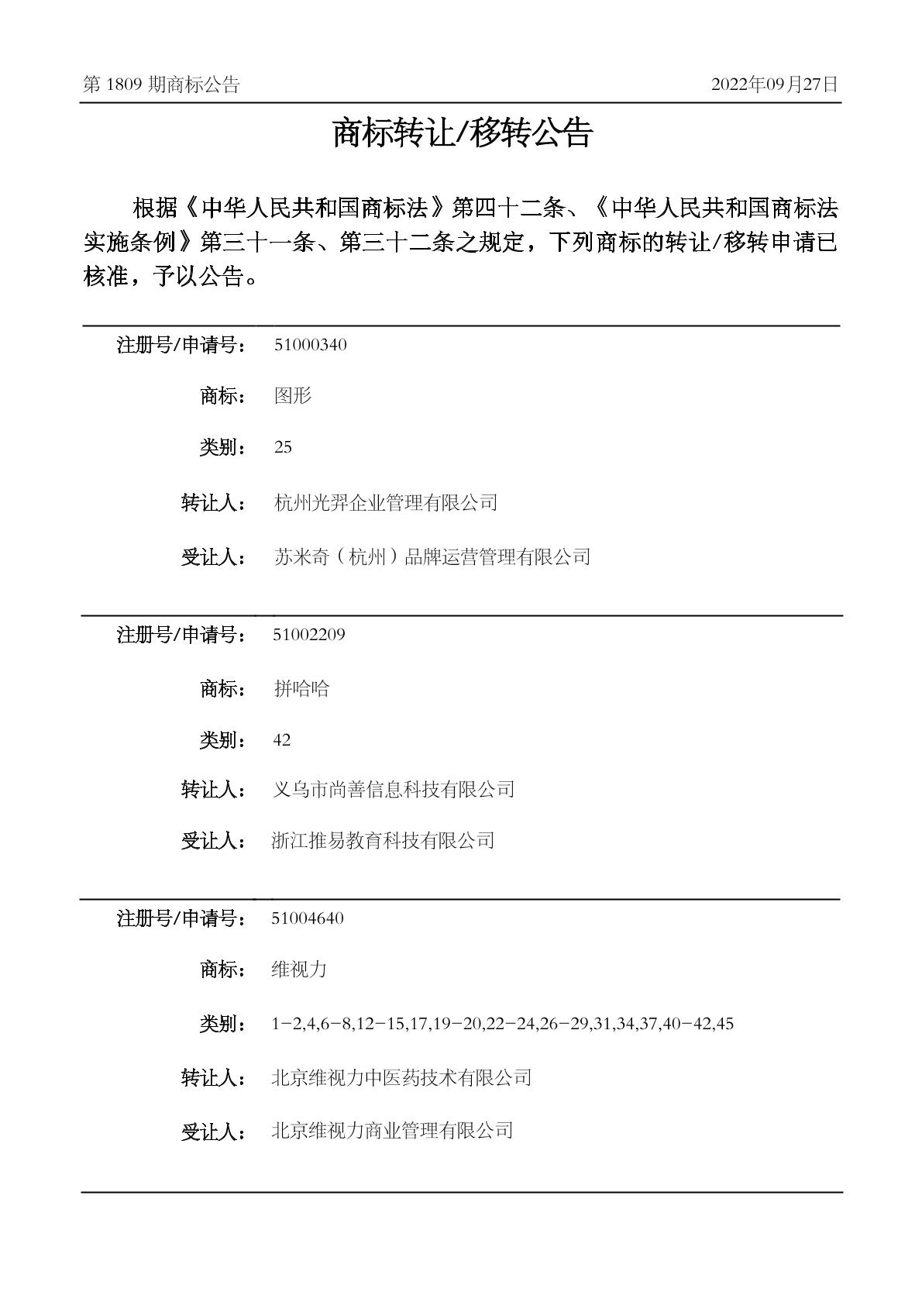 2022-11-07 商标转让 | 排版送达公告(商标转让证明)
